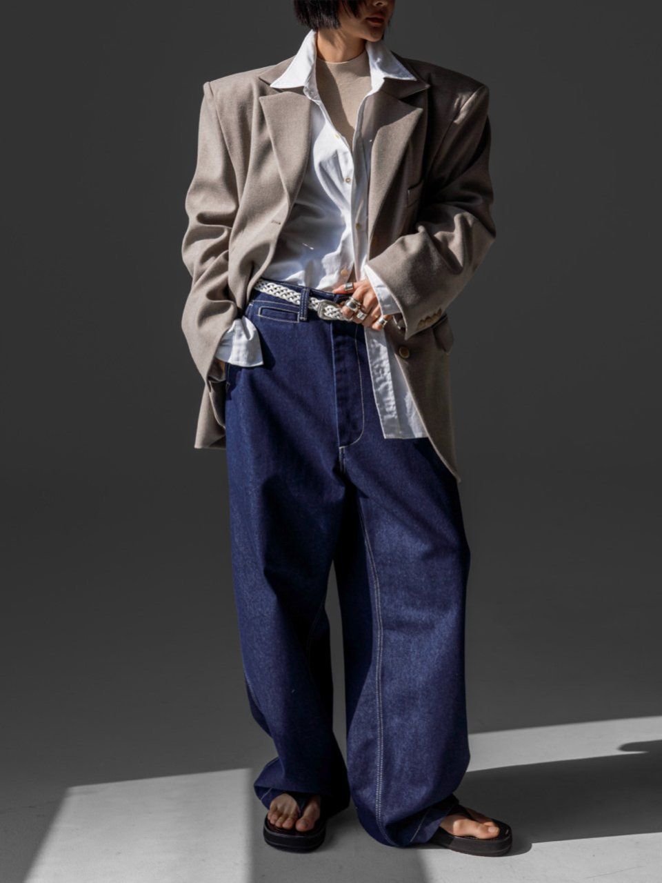 (PAPER MOON) FLANNEL WOOL SET - UP TAILORED BLAZER : BEIGE