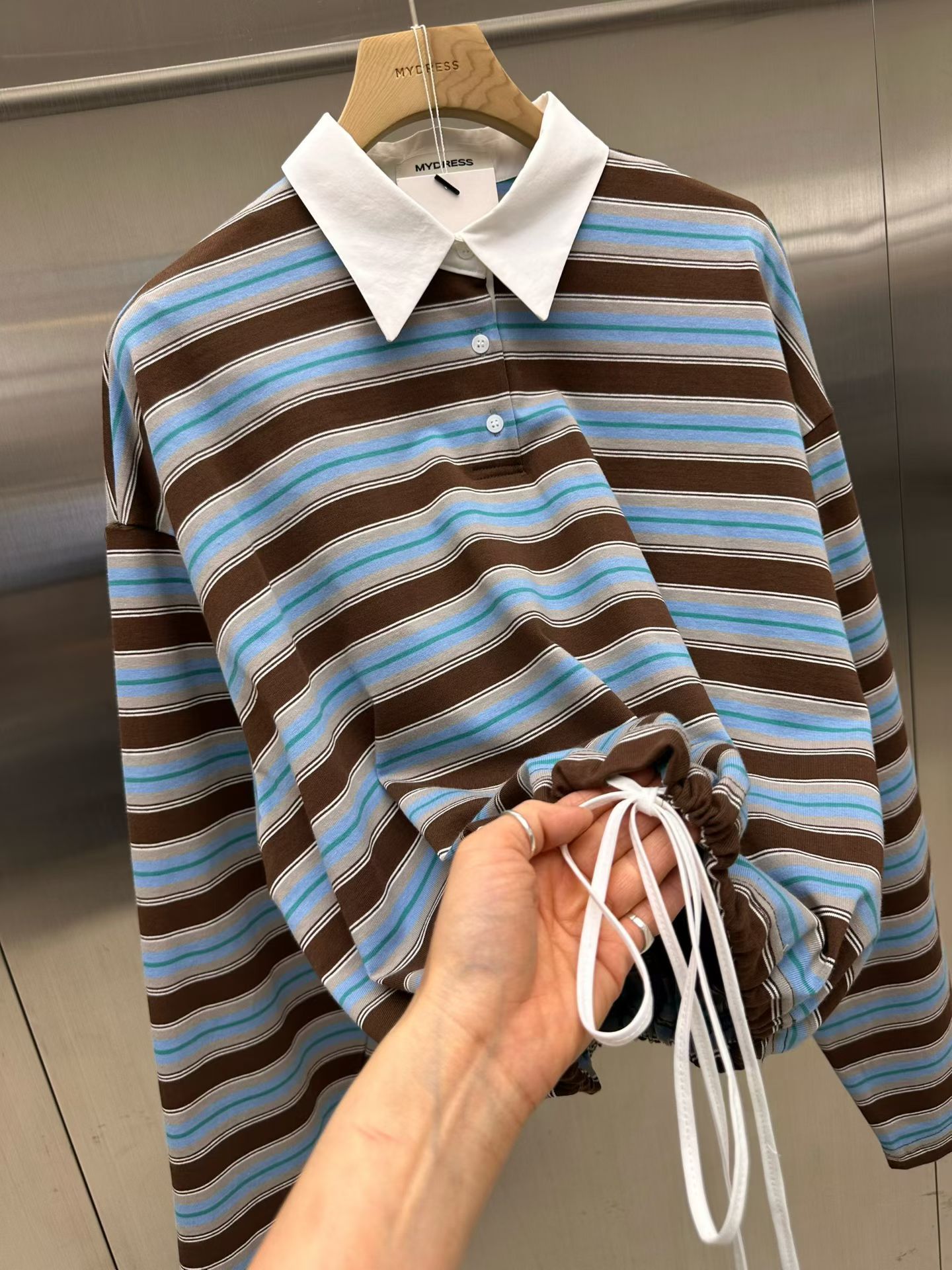 (MY DRESS) 26SS-1-3 TOP : BROWN STRIPE