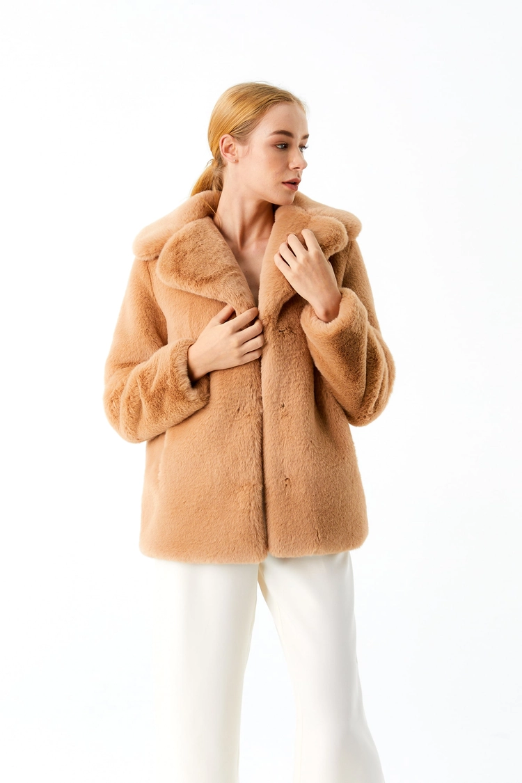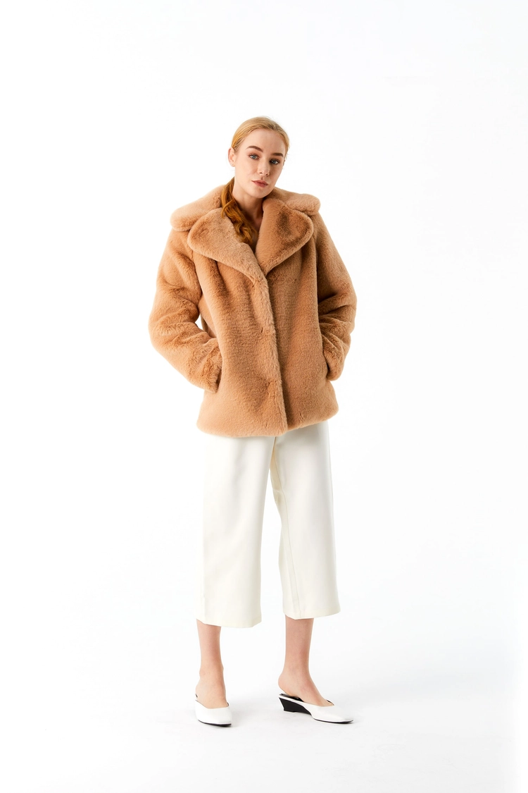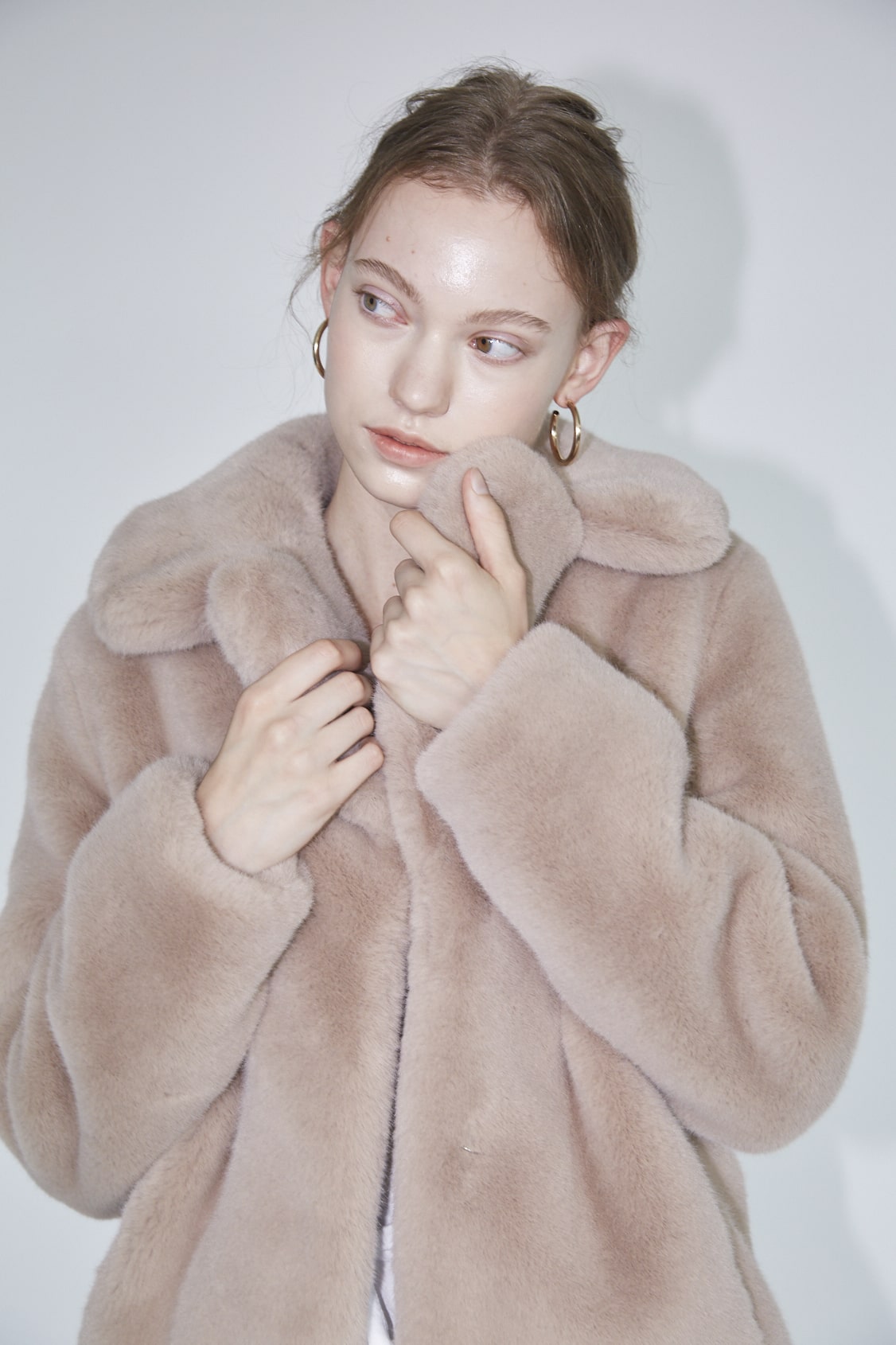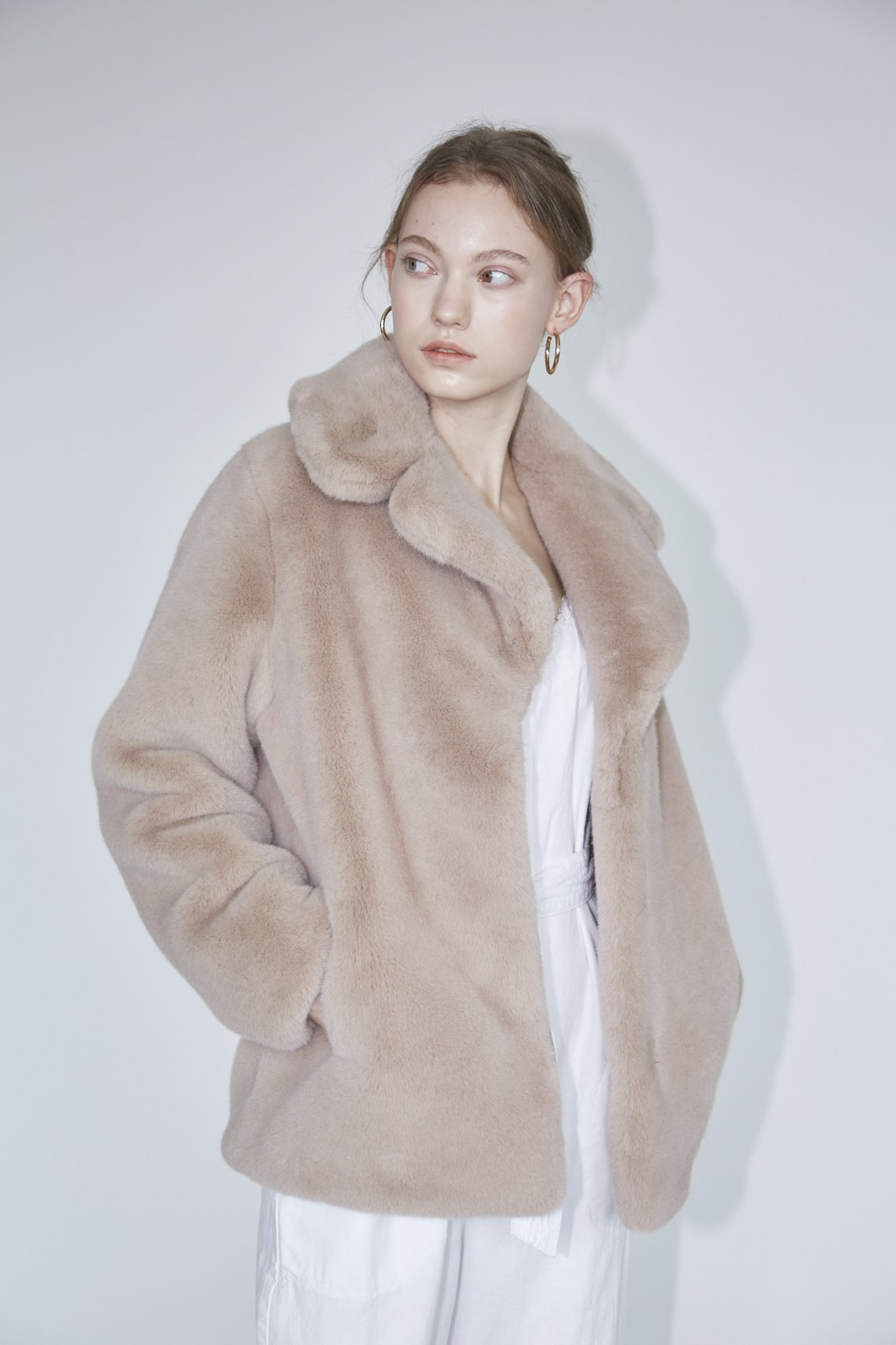 (MOLLIOLLI) MOLLIOLLI FAUX FUR HALF COAT_LIGHTBROWN